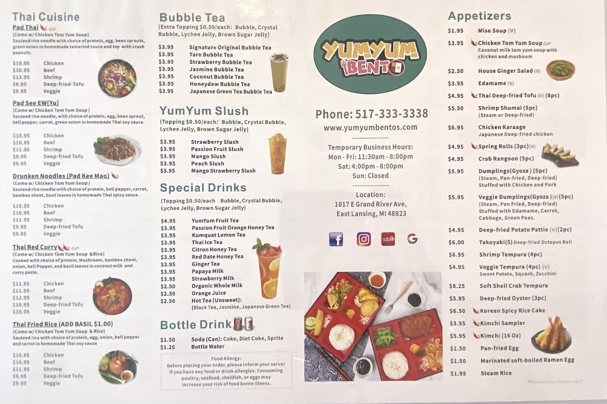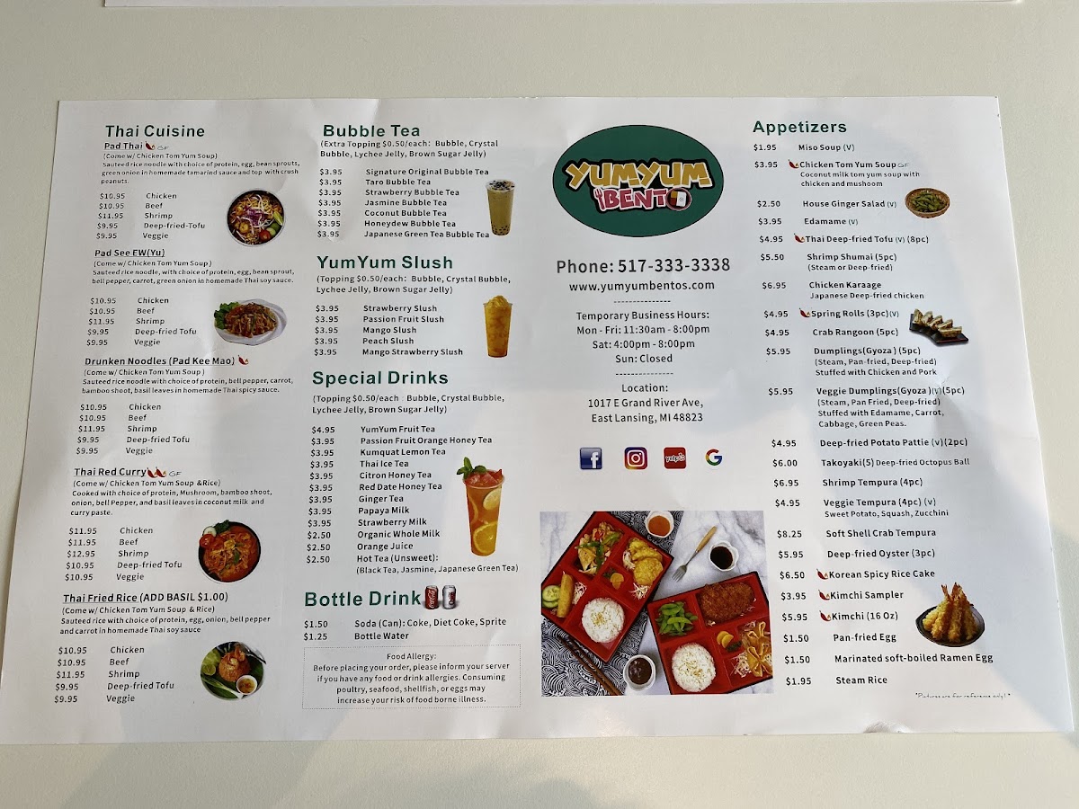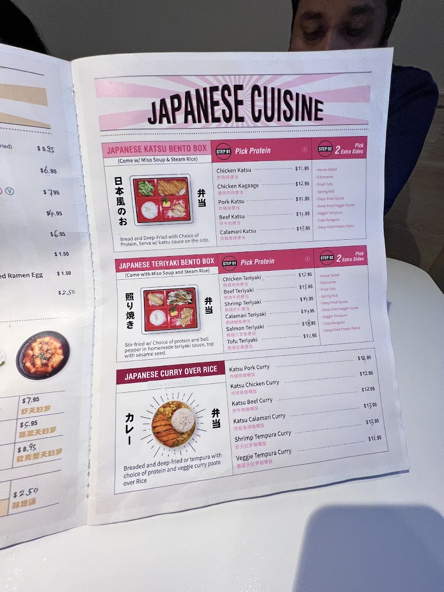 Sides: House Salad, Fried Tofu(3), Edamame, Spring Roll, Deep Fried Gyoza (2), Veggie Tempura(3), Veggie Tempura(3), Crab Rangoon(2), Deep Fried Potato Pattie.